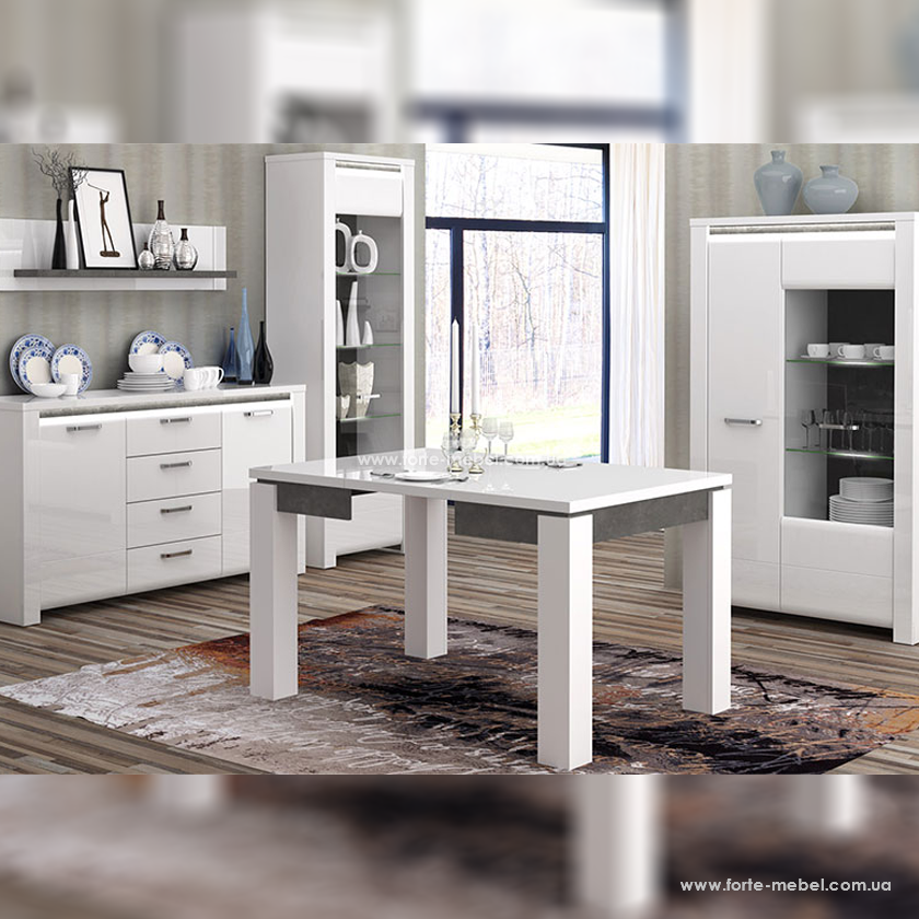 Белый/Темно серый бетон/Белый глянец