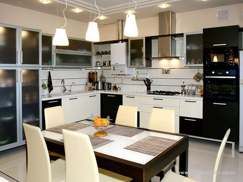 При планировании освещения кухни вы должны позаботиться об общем свете, который будет рассеиваться и, что самое важное,  хорошими лампами или отражателями. Хорошо повесить лампу над столом, которая станет основным местом для семейных встреч. Из предоставленного широкого ассортимента вы можете выбрать освещение, которое представляет собой набор ламп и галогенов или прожекторов, а также отдельные лампы, которые в комбинации будут строить современное пространство. Если кухня является частью гостиной, вы можете попытаться создать стилистический баланс. Добавляя стилизованную лампочку, у нас есть возможность получить уникальный эффект.
