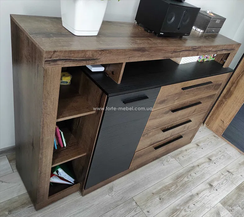 Комод доступний у колірній комбінації: Благородний Дуб та Чорний Дуб.