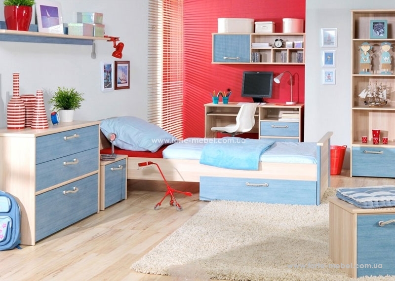 Головний предмет меблів у такій кімнаті, звичайно ж, містка шафа. Ми також можемо запропонувати кілька гаджетів, які будуть вміщувати аксесуари,і в той же час буде дуже привабливим елементом декору. Вибір кольору стін у молодіжній кімнаті найчастіше роблять самі підлітки, що орієнтуються на «дорослі» кольори.