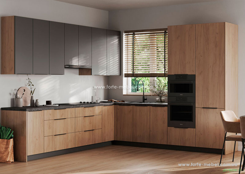 Сучасні кухні оформлені у стилі мінімалізму. Корпуси шаф легкі, виконані з увагою до деталей та міцні, але водночас не мають надмірної кількості декору. Ручки часто замінюють механізмами TIP-ON, які дозволяють відкривати шафи та ящики при натисканні.